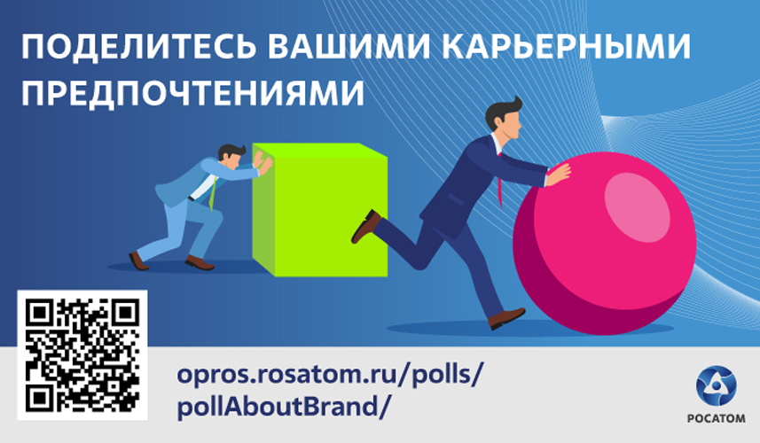 Опрос полностью анонимный и займёт у вас не более 1 минуты, а нам это позволит сделать бренд и работу в Росатоме ещё более привлекательными.