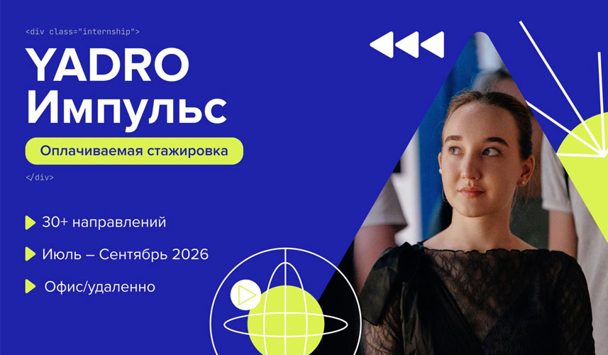 Студенты вузов и ссузов очной формы обучения (начиная со 2 курса и старше), а также выпускники 2026 года, которые планируют продолжить обучение в магистратуре, приглашаются на стажировку «Импульс» компании «YADRO».