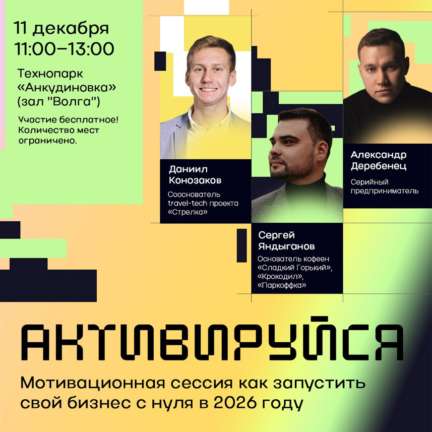 Технопарк «Анкудиновка» в канун Нового года приглашает начинающих предпринимателей на мотивационную сессию «Как запустить свой бизнес с нуля в 2026 году».