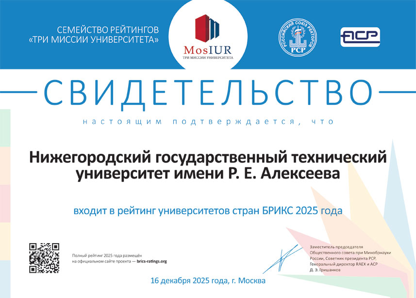 Среди 750 университетов, вошедших в рейтинг, Нижегородский государственный технический университет имени Р.Е. Алексеева занимает позицию в группе 401-450.