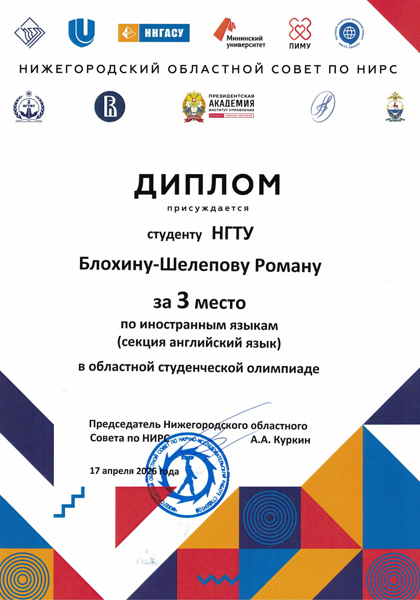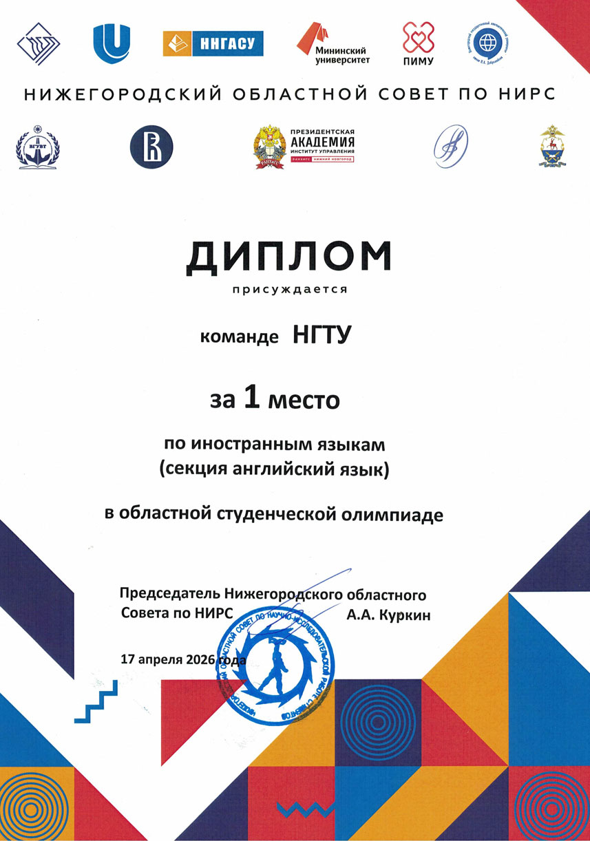 Победители внутривузовского этапа приняли участие в областной олимпиаде, который проводила кафедра иностранных языков и лингвокультурологии ИМОМИ ННГУ им. Н.И. Лобачевского.