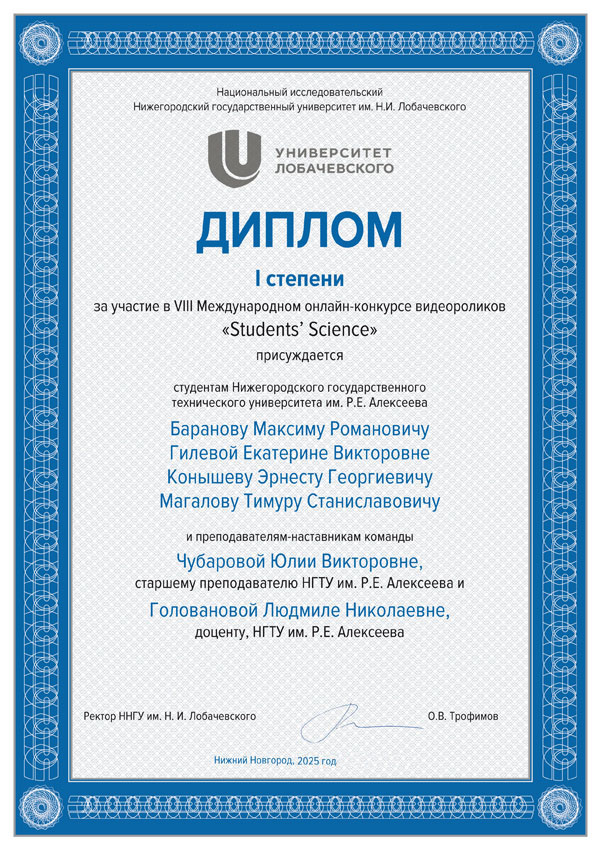 По итогам конкурса творческой работе студентов Нижегородского государственного технического университета было присуждено первое место.
