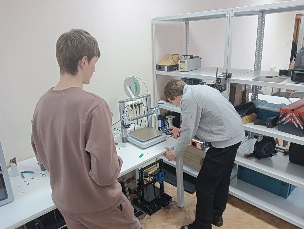 Валерий Спирин показал работу лазерного оборудования и оптоволоконного маркера. Ребята изучили тонкости обработки материалов и самостоятельно запустили процесс, создав свои первые детали из фанеры.