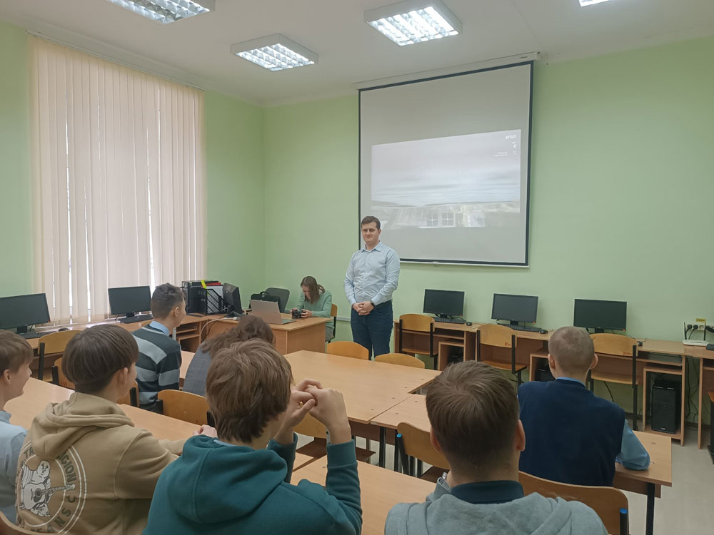 Ученики 8«А» класса вместе с классным руководителем Мариной Львовной Горенковой погрузились в мир современных технологий. Ассистент кафедры «Конструирование и технологии радиоэлектронных средств» Кирилл Сергеевич Сычёв познакомил ребят с устройством и управлением беспилотными летательными аппаратами. Школьники с интересом изучали компоненты дронов, принципы их работы и даже пробовали свои силы на профессиональном авиасимуляторе.