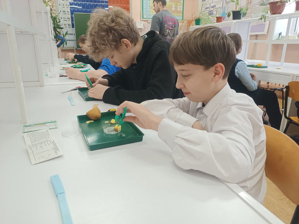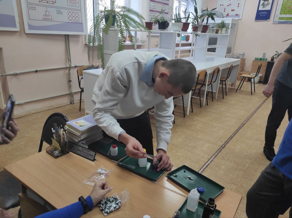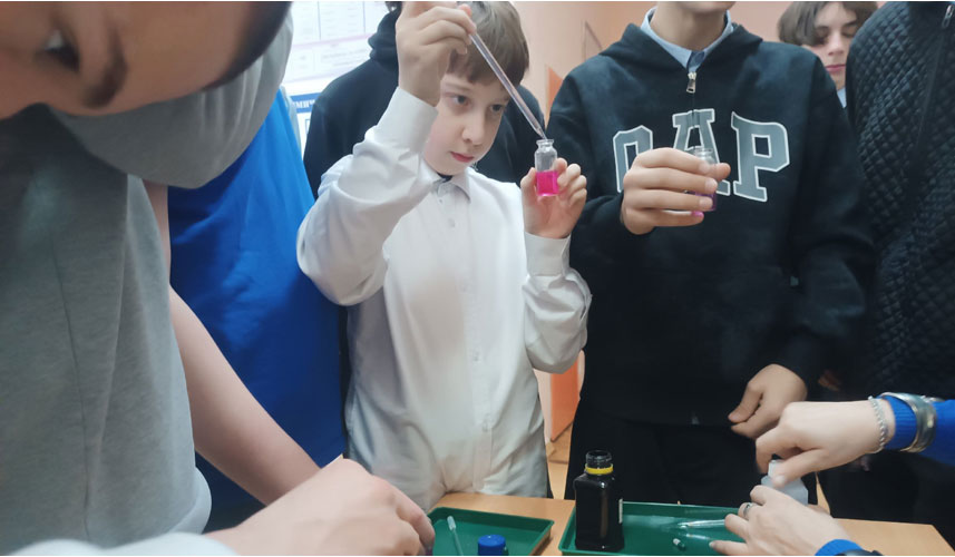 Тем временем ученики 8«Б» класса с классным руководителем Ириной Николаевной Кукушкиной исследовали мир химии. Вместе с доцентом кафедры «Технология машиностроения», кандидатом химических наук Анной Викторовной Архиповой и студентами-помощниками Максимом Назаровым и Егором Канатьевым ребята проводили эксперименты: анализировали содержание нитратов в овощах и фруктах, определяли уровень кислотности и проверяли жесткость питьевой воды. Каждый смог почувствовать себя настоящим лаборантом.