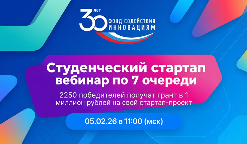 Фонд содействия инновациям проводит вебинар, посвящённый 7-й очереди конкурса «Студенческий стартап», который будет запущен ФСИ в ближайшем будущем.