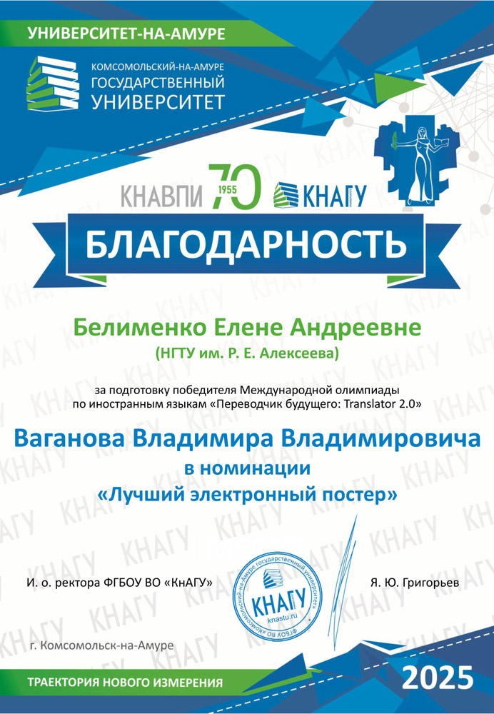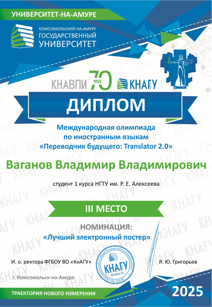 Международная олимпиада по иностранным языкам «Переводчик будущего: Translator 2.0» проходила на площадке Комсомольского-на-Амуре государственного университета с 30 сентября по 10 ноября 2025 года в заочном формате.