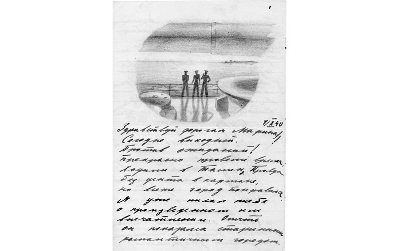 Письма написаны в период службы в Таллине. В них Алексеев делится впечатлениями о городе, описывает уклад военного быта, распорядок дня и атмосферу прибалтийского порта. Среди строчек — наблюдения за чистыми каменными улицами, витринами магазинов, погодой и морским ветром. На полях встречаются карандашные зарисовки — фигуры прохожих, морские сцены, мгновения повседневности.