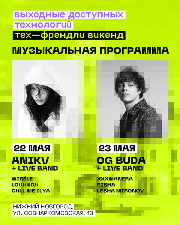 Вход на музыкальную программу и другие мероприятия «Тех-Френдли Викенд» бесплатный по обязательной регистрации.