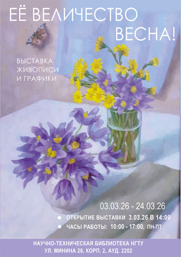 3 марта 2026 года в Нижегородском государственном техническом университете им. Р.Е. Алексеева состоится открытие выставки картин «Ее Величество Весна!», посвященной Международному женскому дню.