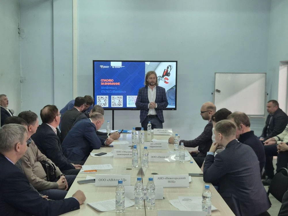 Одной из ключевых практических составляющих мероприятия стало знакомство с Центром развития промышленной робототехники, созданным на базе НГТУ им. Р.Е. Алексеева. Центр представляет собой уникальную учебно-производственную площадку, моделирующую производственный жизненный цикл изделий машиностроения в условиях роботизированного производства — от автоматизированного склада заготовок до склада готовой продукции, включая задачи по сервисному обслуживанию и сопровождению.