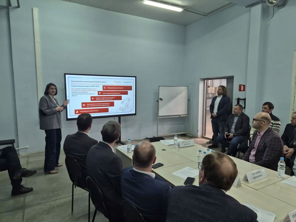 Сотрудники ЦРПР представили свои компетенции и текущие проекты в области промышленной робототехники, продемонстрировали возможности внедрения роботизированных решений в действующее производство.