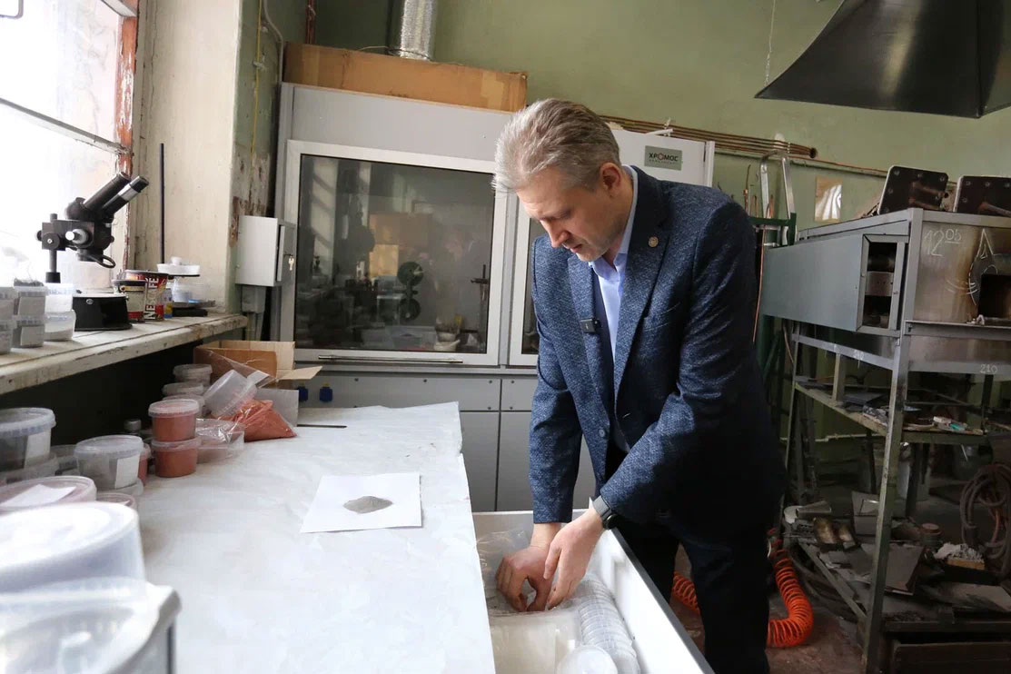 Доцент кафедры «Материаловедение, технологии материалов и термическая обработка металлов» НГТУ имени Р.Е. Алексеева Евгений Беляев показал «акулам пера и микрофона» свои исследования, а также штатные изделия, предназначенные для систем жизнеобеспечения скафандров серии «Орлан».
