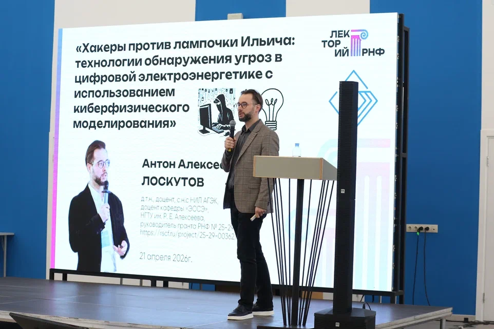 - Антон Лоскутов, доктор технических наук, старший научный сотрудник НИЛ «Автономные гибридные электроэнергетические комплексы», доцент кафедры «Электроэнергетика, электроснабжение и силовая электроника», сделал доклад по теме «Хакеры против лампочки Ильича: технологии обнаружения угроз в цифровой электроэнергетике с использованием киберфизического моделирования»;