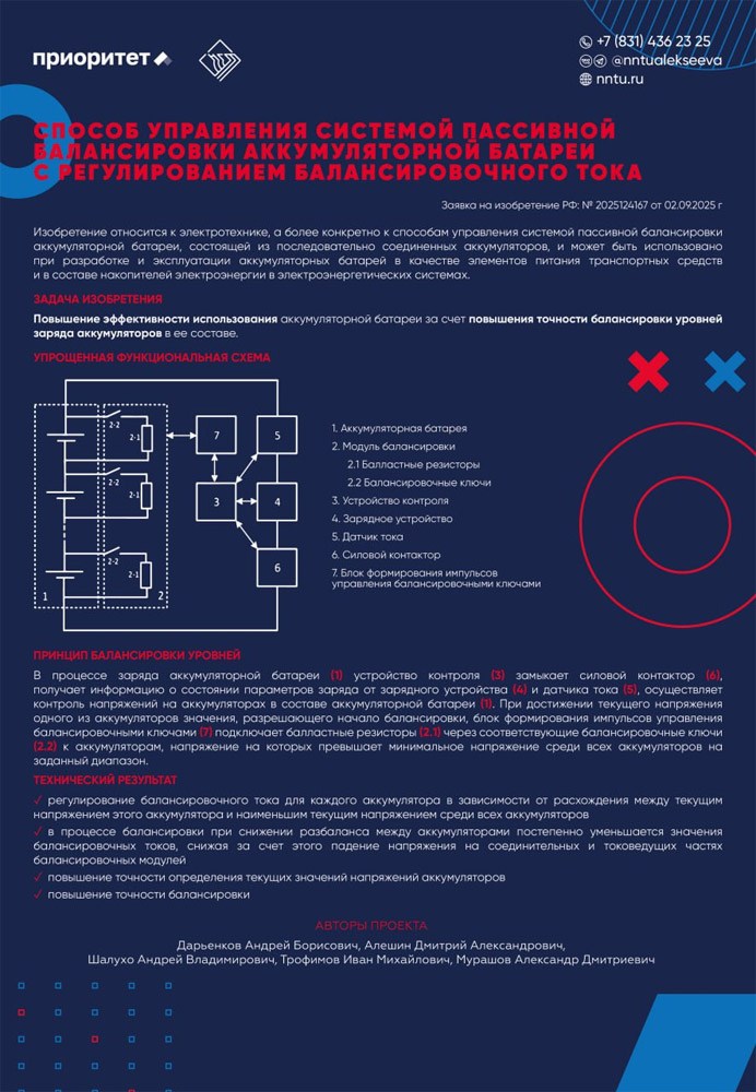 - «Накопитель электроэнергии с адаптивной системой балансировки заряда»;