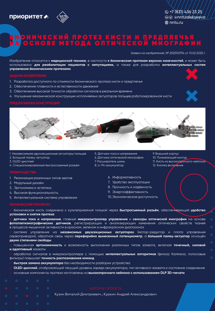 - «Бионический протез кисти и предплечья на основе метода оптической миографии»;