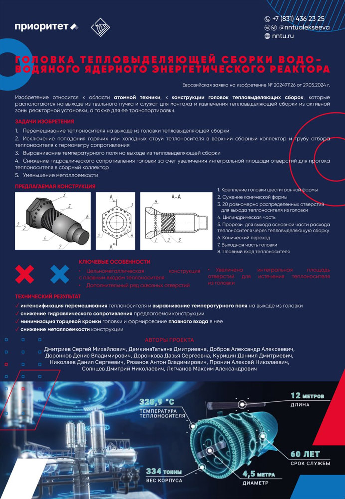 - «Головка тепловыделяющей сборки водо-водяного ядерного энергетического реактора»;