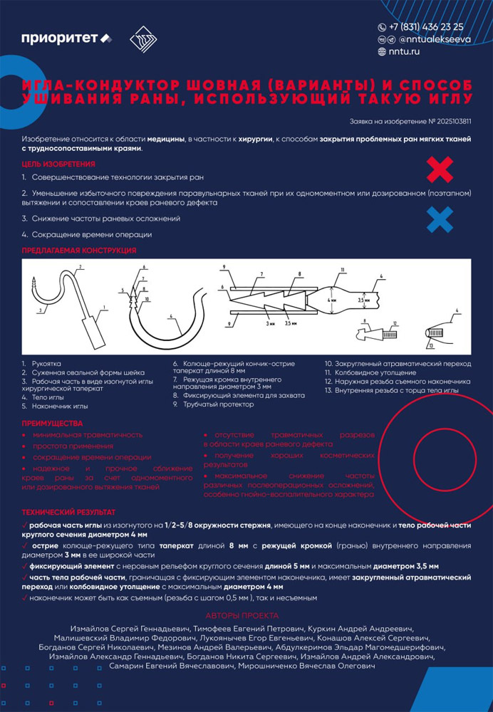 - «Способ ушивания раны и игла-кондуктор шовная (варианты) для его осуществления»;