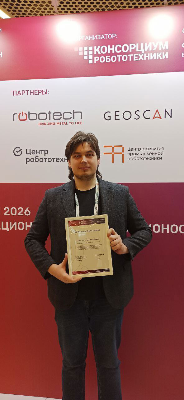 Инженер-робототехник Центра и ассистент кафедры «Автоматизация машиностроения» института промышленных технологий машиностроения НГТУ Антон Лайша работал в секции «Компоненты и технологии робототехники», где обсуждались вопросы создания отечественных технологий робототехники и обеспечение серийного производства компонентов, которые являются стратегической задачей, обеспечивающей технологическое развитие и суверенность высокотехнологичных индустрий в России.