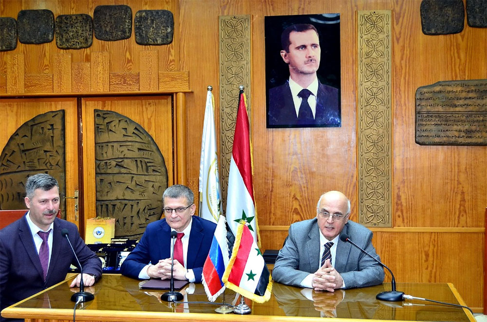 Ректор Бассам Хассан, приветствуя все формы сотрудничества и совместной работы с российскими коллегами, подчеркнул, что разнообразие специальностей в Тишринском университете позволяет взаимодействовать с большим количеством российских вузов.