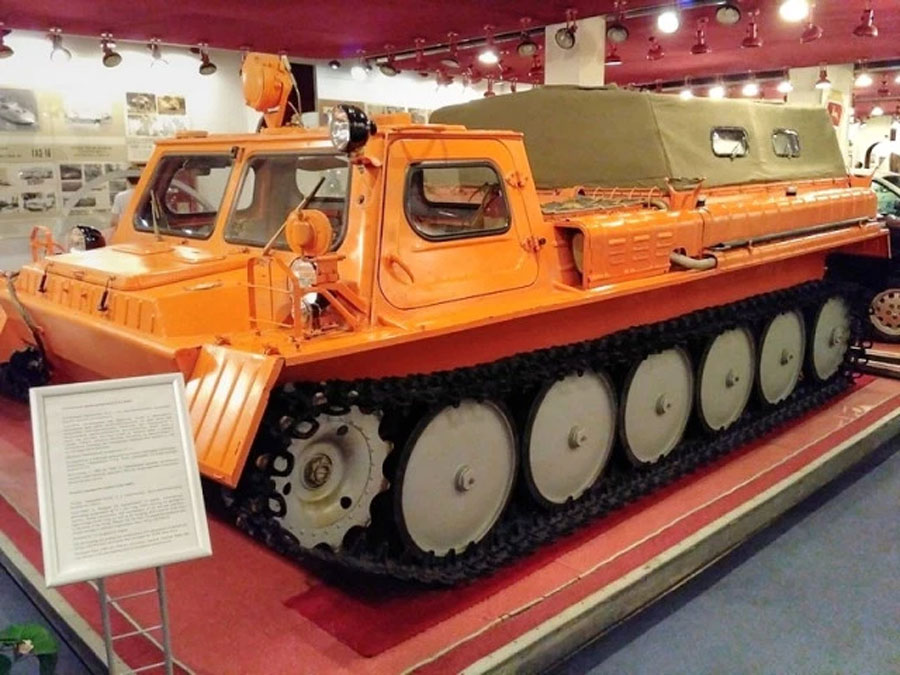 Владимир Петрович принял смелое и нестандартное решение – разместить двигатель за кабиной, перевернув его наоборот. Спереди к нему крепился весь набор – коробка передач, раздаточная коробка и главный редуктор с бортовыми фрикционами (ведущие звездочки, как и на ГАЗ-47, располагались впереди). Схема была настолько удачной, что гусеничная амфибия центральномоторной компоновки ГАЗ-71 (ГТ-СМ) в итоге получилась великолепной с практически идеальной развесовкой».