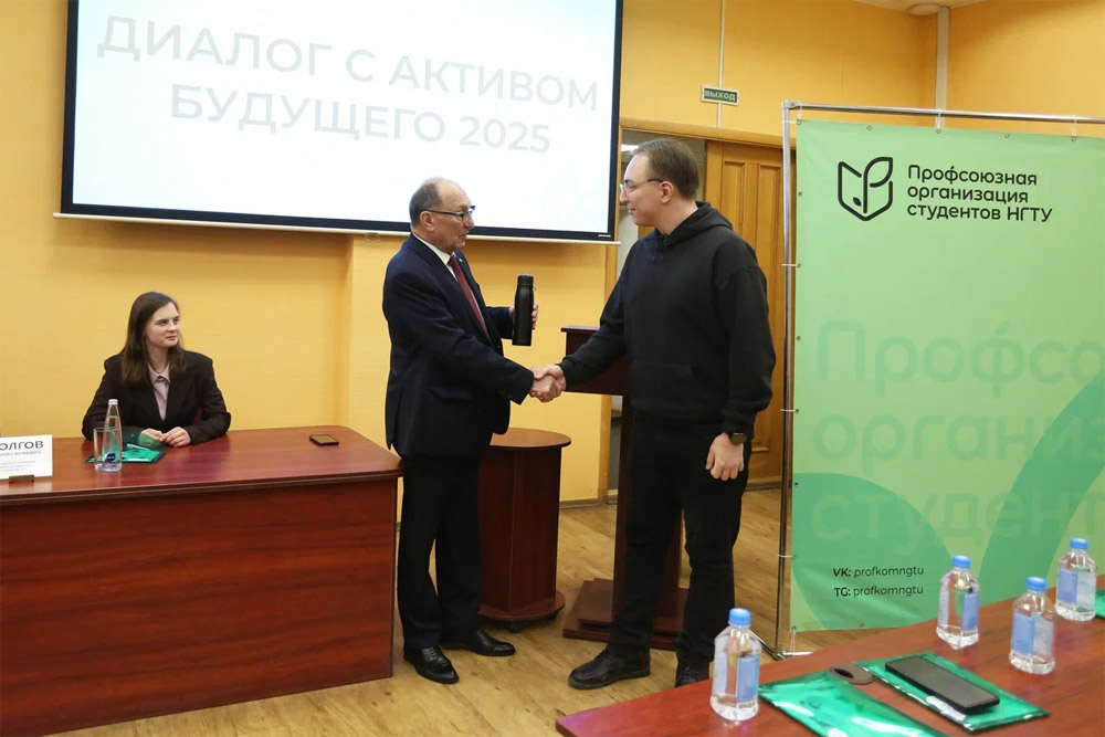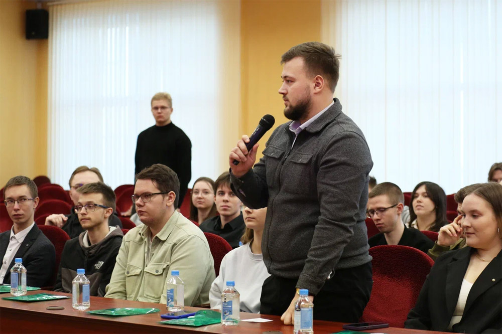 Перед началом встречи ее организаторы объявили конкурс на лучший вопрос. По итогам диалога приз был присужден студенту института промышленных технологий машиностроения и сотруднику медиацентра «Импульс» НГТУ им. Р.Е. Алексеева Кириллу Васцыну, задавшему вопрос о будущем университета.