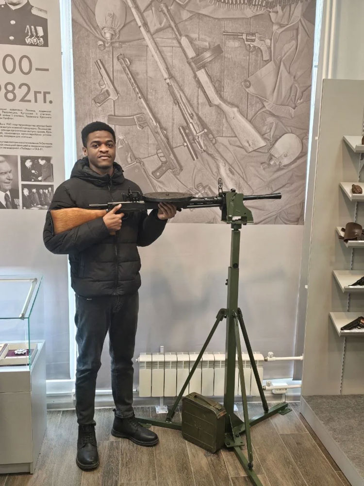 Также иностранные студенты посетили экспозицию образцов стрелкового оружия времён ВОВ и послевоенного периода. Выставка была интерактивной, поэтому некоторые участники смогли потренироваться в собирании легендарного автомата Калашникова - АК-74.