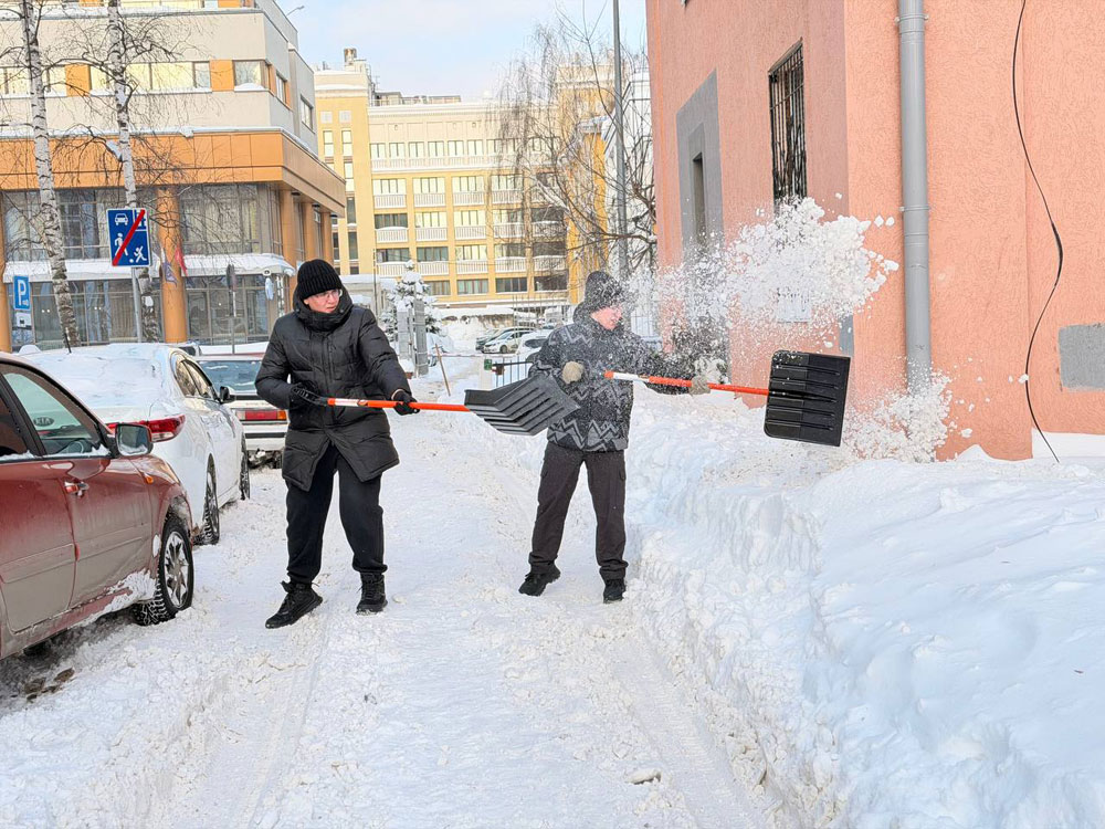 Волонтеры помогли коммунальщикам очистить от снега дворовые территории возле социально-значимых объектов.