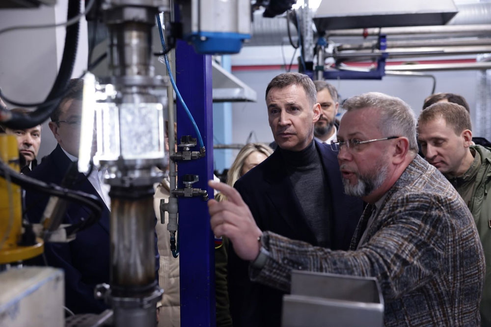 В рамках рабочего визита Дмитрий Патрушев и Глеб Никитин оценили работу первого в регионе экопромышленного парка, расположенного в западной части Дзержинска. Они осмотрели производственные мощности, ознакомились с продукцией завода по производству модифицированных полимеров ООО «Окапол» и побывали в цехе ООО «НИИНТЦ ДорНАУ», где на основе переработки шин пневматических отработанных автотранспортных средств планируется создание производства модификаторов асфальтобетонов.
