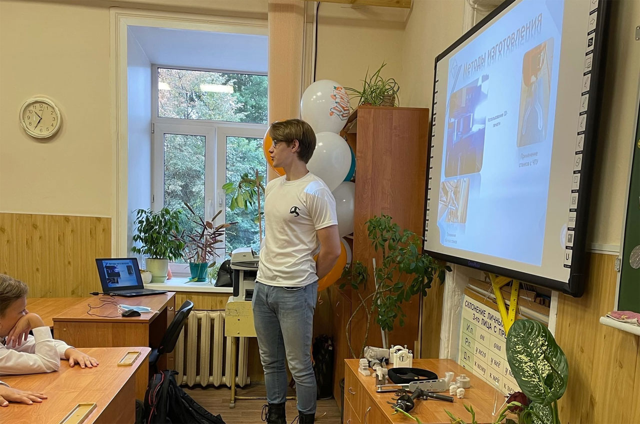 Студенты НГТУ Василий Хозеров (ИРИТ) и Максим Гулин (ИТС) рассказали учащимся о работе в студенческом конструкторском бюро, создании спортивного автомобиля класса Formula Student. В ходе работы они изучают различные инженерные инструменты и учатся работать с технологическим оборудования. Также студенты поделились, что в процессе создания автомобиля они решают различные прикладные задачи. У каждого участника есть своя область работы, например Василий Хозеров отвечает за создание электронной системы управления, а Максим Гулин – за рулевую систему.