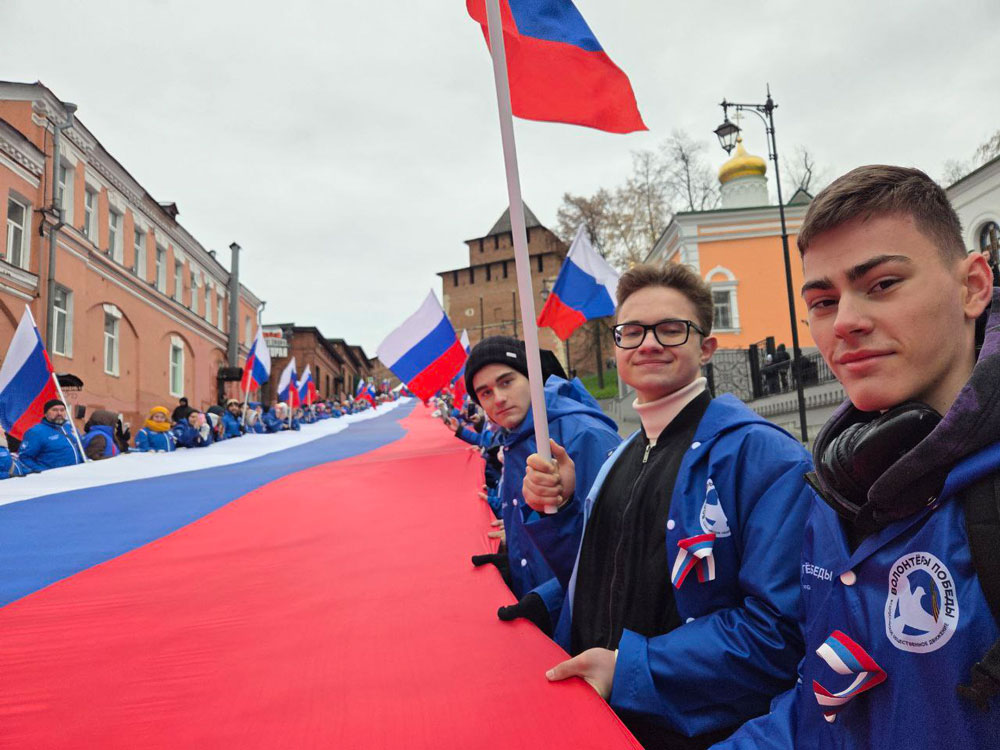 4 ноября, в Нижнем Новгороде состоялось масштабное праздничное шествие в честь Дня народного единства, которое объединило более 600 участников. Они прошли от Кремля до площади Народного Единства и развернули 100-метровый российский триколор.