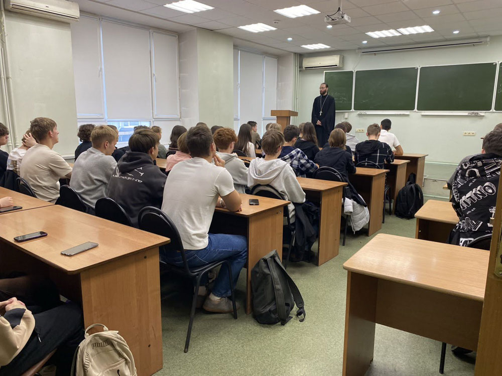 В ходе духовной беседы с двумя группами студентов первого курса Института ядерной энергетики и технической физики были затронуты различные темы: семейные ценности, традиционная российская семья, смысл жизни и человеческого бытия, милосердие и сострадание.