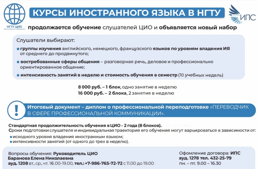 Центр иноязычного образования НГТУ (ЦИО) приглашает ведет подготовку слушателей с 1997 года.